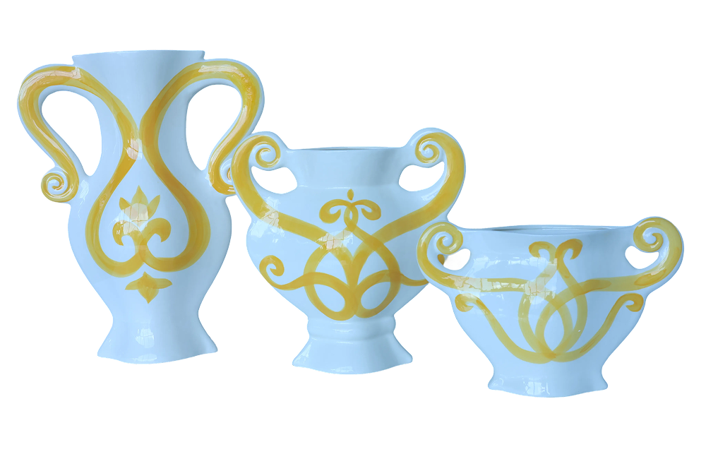 Product ID: CV-Majorca-623Transport your space to the sun-drenched coast of the Mediterranean with The Capri Collection. Inspired by the classic, bold ceramic traditions of Spain and Italy, this collection features high-gloss white ceramic pieces hand-painted with dramatic, flowing scrollwork designs.Each piece is a celebration of coastal living, adding a burst of Azura Blue or Citrine Yellow color that works perfectly with coastal, bohemian, or traditional European decor.