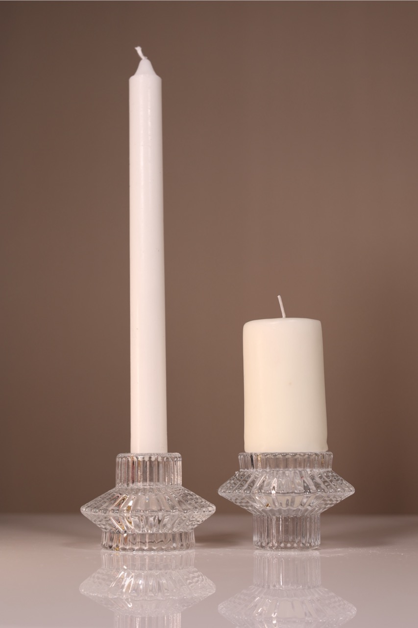 Product ID: CH-Crystalrev-58Why choose between tapered or Votive candles when you can have both? This clever crystal candle holder pulls double duty with its reversible design - flip it one way for your favorite tapered candles, then turn it over when you're in the mood for a slim pillar candle instead. The versatile holder lets you switch up your ambiance whenever the mood strikes, while the sparkling crystal catches and reflects candlelight for an extra touch of magic. Perfect for creating just the right atmosphere, whether you're hosting an elegant dinner party or simply enjoying a quiet evening at home. One holder, endless possibilities - now that's brilliant design at its best.
