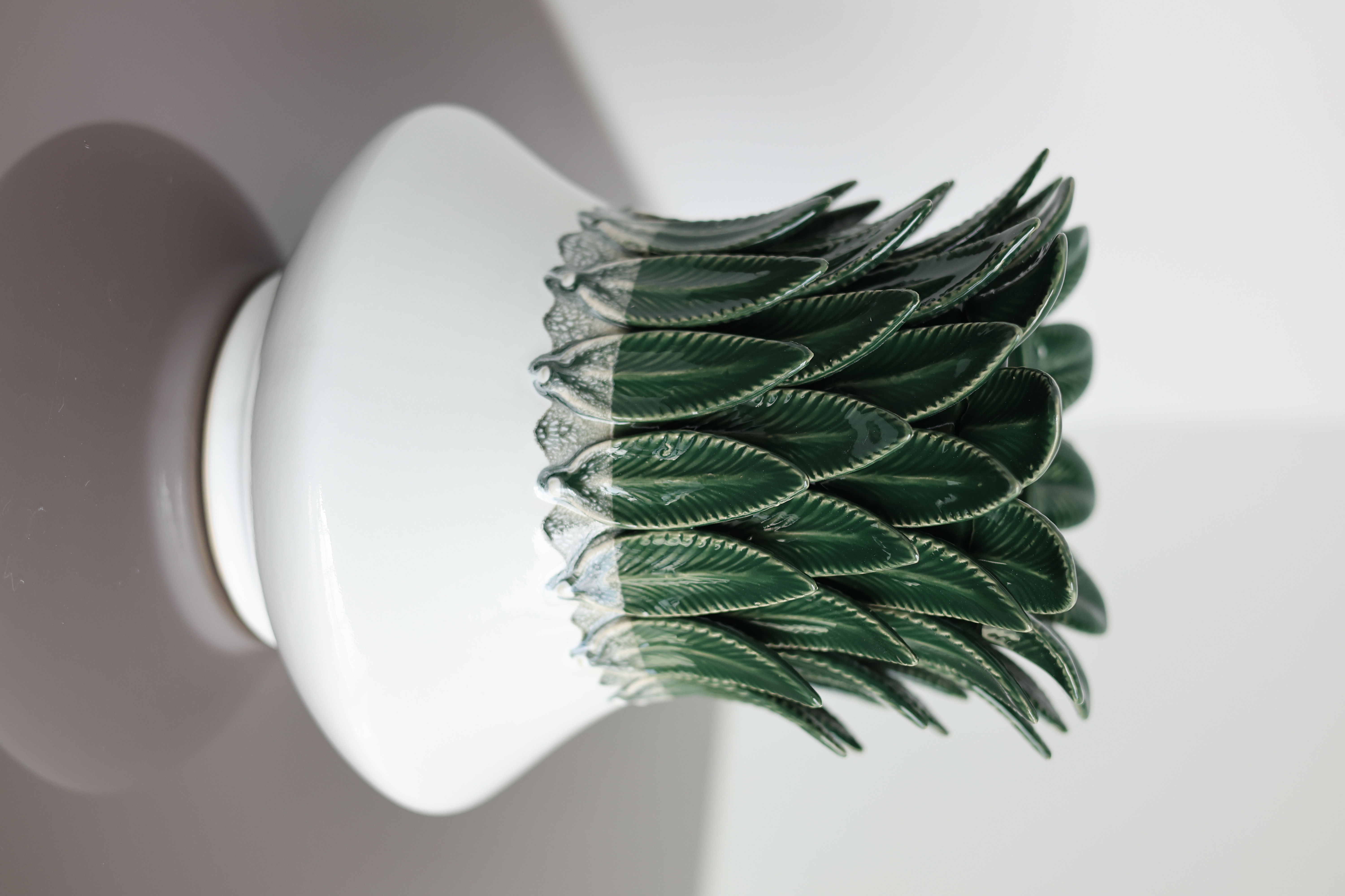 Product ID: CV-LEAF-608Bring a touch of lush, tropical elegance into your home with The Palma Collection. This stunning line of ceramic decor features eye-catching pieces inspired by the intricate beauty of palm fronds and pineapples. Each item combines a dramatic, deep green leaf design with a clean, high-gloss white base or a stylishly textured crackle glaze, creating a modern, botanical statement.